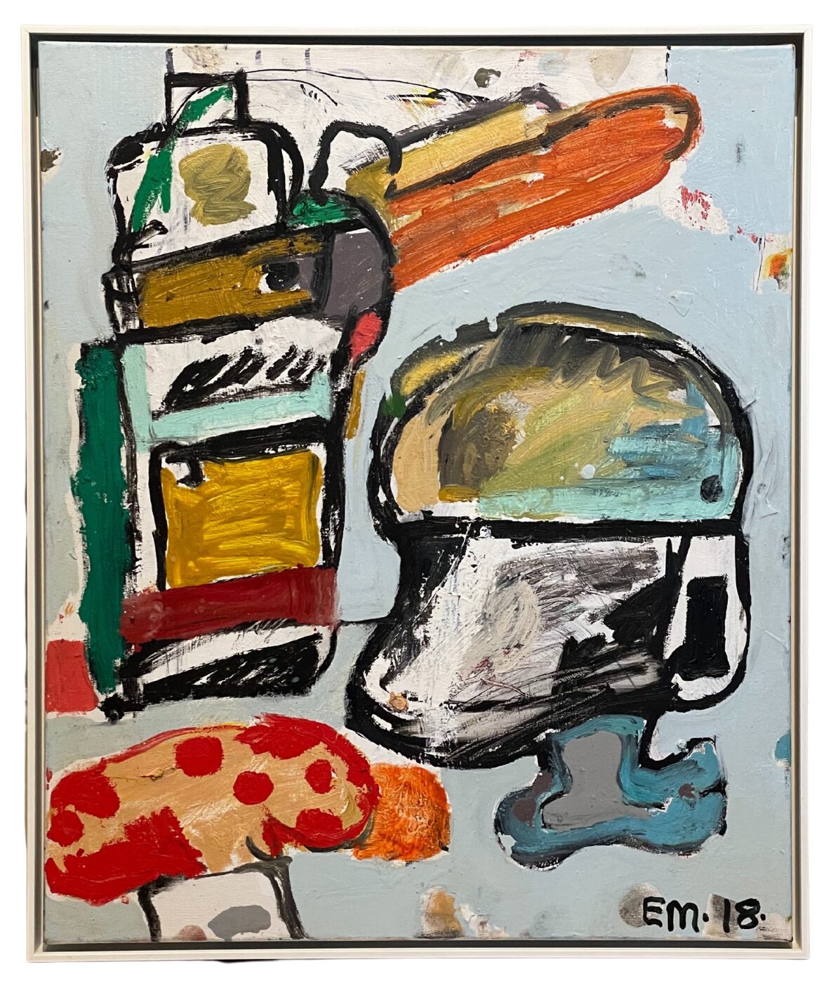 Oil and acrylic paint on canvas, framed